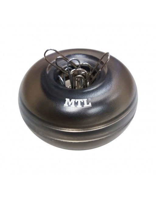 Portaclip con forma redonda, imantado en plástico traslúcido. Incluye 20 clips de 28 mm.