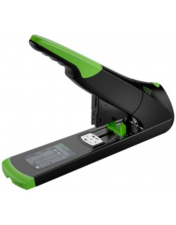 Grapadora de gruesos profesional, para uso diario. Fabricada en un 81% de plástico ABS reciclado. Sistema de bloqueo para evitar atascos, capacidad de grapado de hasta 140 hojas. Grapa en Zig-Zag (Bypass) permitiendo grapar el máximo o el mínimo de hojas sin tener que cambiar el tipo de grapa. Girando la sufridera se puede realizar grapado cerrado con la grapa adecuada según el grosor a grapar. La profundidad de entrada del papel puede variar hasta 75mm. Cargador de apertura frontal con doble guía, con capacidad de 100 grapas de 23/6 23/8-23/10 -23/13-23/15-23/17. Con certificado de Seguridad GS. German Engineering By NOVUS y garantía: 10 años.