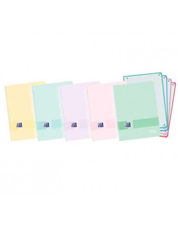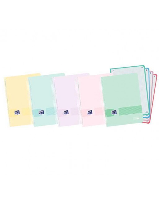 Cuadernos de espiral multiasignatura, de tapas de plástico opaco super resistentes. Gran resistencia al uso intensivo. Hojas microperforadas con 6 taladros, para archivar fácilmente las hojas en carpetas de anillas o archivadores. Formato A5, con 120 hojas de papel de 90gr. OptikPaper: un papel exclusivo de Oxford único por su opacidad, lisura y satinado. La tinta no traspasa de un lado a otro ni se dispersa, resistente a la presión del lápiz y al borrado. Permite la escritura en ambas caras de la hoja. Espiral con cierre de seguridad coil-lock para no dañar al usuario y evitar que se enganche con otra espiral. Con 4 bandas de color: ideal para la organización por asignaturas o temas. Rayado 5x5 enmarcado con cabecera. Compatible con la aplicación gratuita SCRIBZEE que permite escanear tus notas manuscritas para poder tenerlas en el móvil, tablet u ordenador. Certificado PEFC. Amarillo pastel, azul pastel, ice mint pastel, rosa pastel y malva pastel.