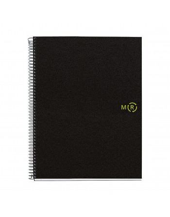 Cuaderno de espiral con sistema Coil Loop. Tapa blanda, formato A4. Libreta de 80 hojas de 90gr. con cuadrícula 5x5. Hojas microperforadas y con 4 taladros, para facilitar su archivo. Bandas de color.