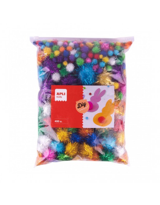 APLI POMPONES BRILLANTES COLORES SURTIDOS - MAXI FORMATO 400 U. - 18753